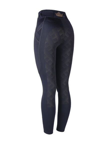 Deze rijlegging is heel prettig in gebruik, zowel tijdens het rijden als tijdens de werkzaamheden rondom het paard. Dankzij de hoge taille sluit de rijlegging mooi aan. Het geprinte siliconen zitvlak zorgt voor betere grip in het zadel, waardoor je vol vertrouwen kunt rijden.**Mooie kleurencombinatie**