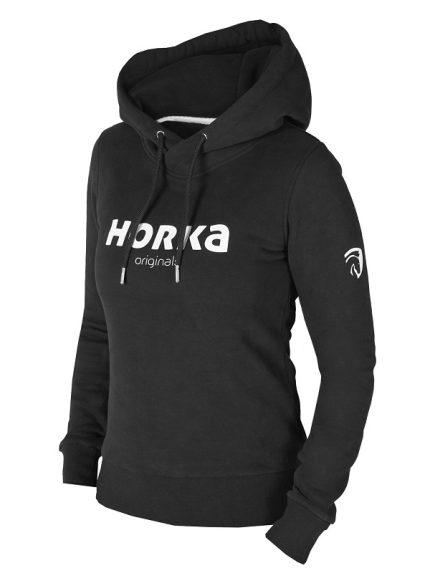 De HORKA Originals Hoodie is een hoodie voor vrouwen. Geborsteld aan de binnenkant voor een 'feel good' vibe. De hoodie heeft een koord in de capuchon en een nauwsluitende geribbelde kraag en manchetten.