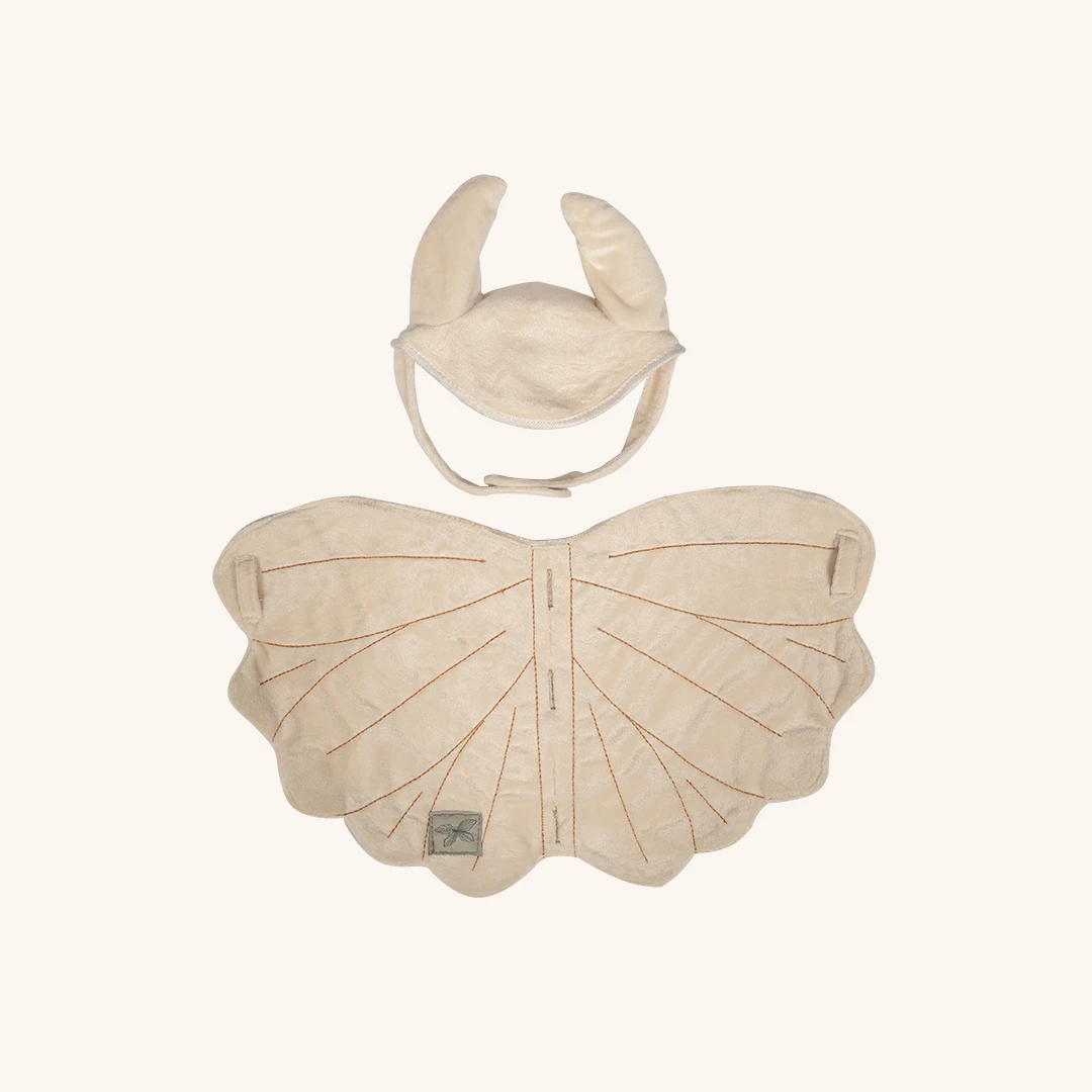 ByAstrup zadeldek en mutsje crème is gemaakt van een boterzachte, luxueuze stof, is het zadeldek voorzien van delicate koperkleurige stiksels die een vleugje warmte en verfijnde details toevoegen. Deze prachtige accenten vormen een opvallend contrast met de zachte crèmekleur, waardoor het zadeldek verandert in een prachtig statement piece dat doet denken aan de delicate schoonheid van vlindervleugels.