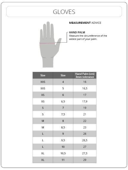 Materiaal: handpalm (51% Nylon, 49% Polyurethane), bovenzijde (87% Polyamide, 13% Elastane)